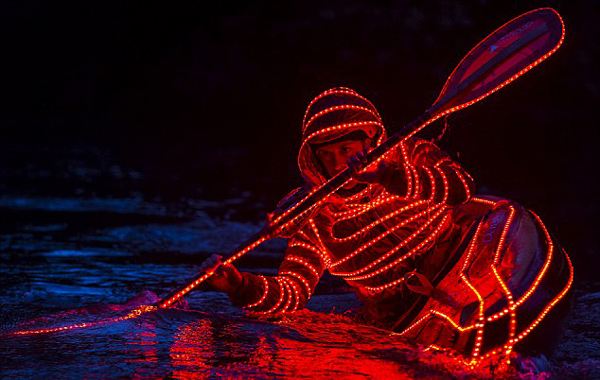 炫酷!美皮划艇爱好者浑身挂满LED灯激流勇进
